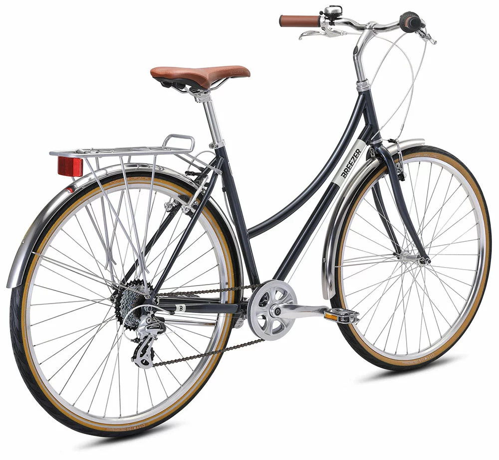 Das Downtown ist das klassisches Alltagsrad von Breezer aus Chromoly-Stahl mit 28-Zoll-Laufrädern und allem, was dazugehört: farbliche passende Schutzbleche und Kettenschutz, Gepäckträger, sichere Bremsen und eine komfortable Sitzposition.