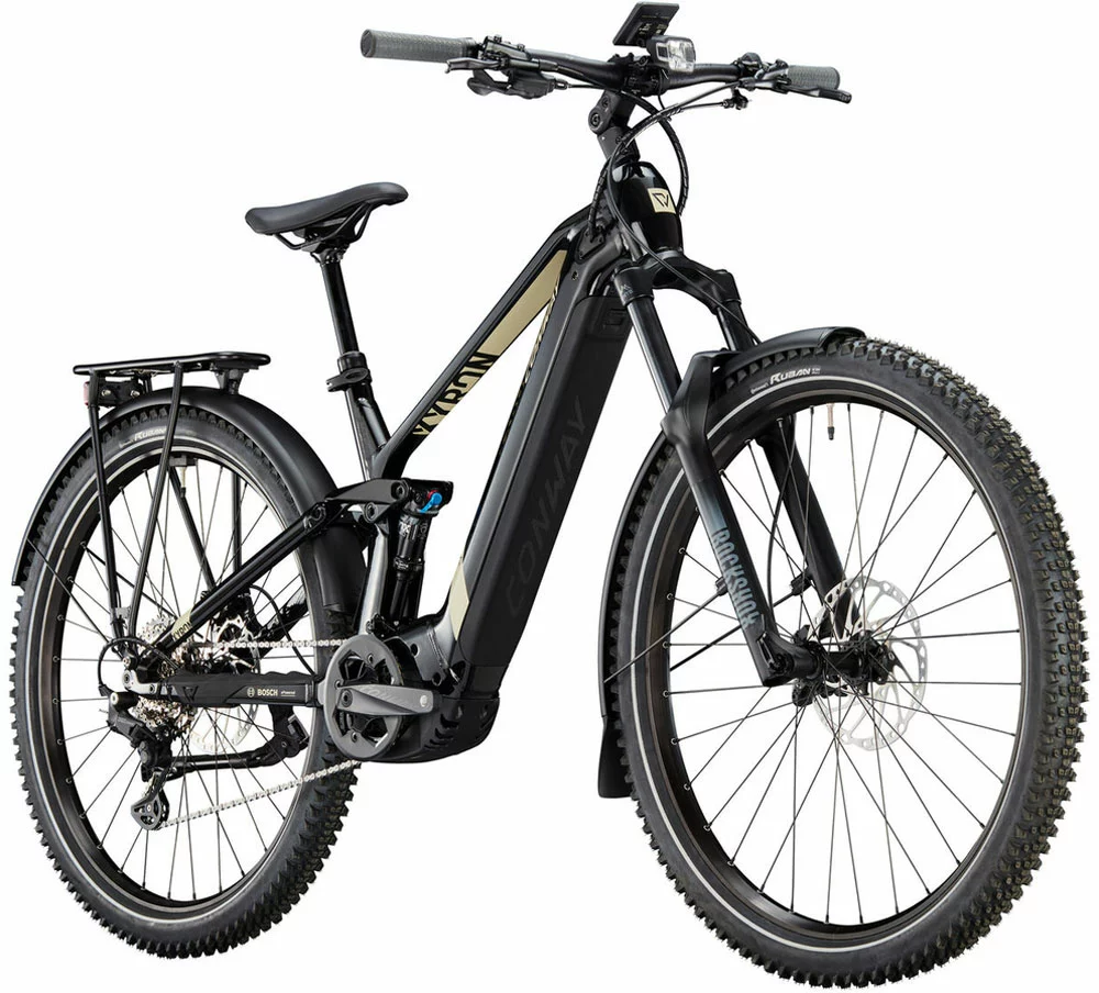 Das Conway Xyron SUV 2.9 ist das wohl bequemste und dennoch alltagstauglichste E-MTB. Ausgestattet mit Licht, Gepäckträger und Schutzblechen vereint es den Komfort eines E-Fullys mit der Praktikabilität eines urbanen Bikes. Es überzeugt mit einem leistungsstarken Bosch Performance CX Gen 4 Motor. Der 625 Wh große Akku versorgt dich zuverlässig mit dem nötigen Strom, damit du noch länger die Zeit auf deinem Bike genießen kannst.