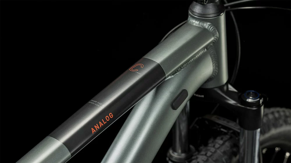 Der brandneue Analog Rahmen besticht mit einem überarbeiteten, supercleanen Look. Verantwortlich dafür: das im Smooth Welding Verfahren hergestellte Steuerrohr und Sattelstützenprofil. Außerdem hat CUBE ihm ein geschraubtes Tretlager gegeben und die Züge ins Innere verlegt, damit sie ihre Aufgabe lange machen und leicht gewartet werden können. Es gibt sogar eine Aufnahme für eine Flat-Mount-Scheibenbremse, die nahtlos in die Seitenständeraufnahme integriert ist. Montagepunkte für ACID Schutzbleche und Gepäckträger sind auch mit dabei. Die überarbeitete Geometrie hat ein niedrigeres Oberrohr und konifiziertes Steuerrohr für noch zuverlässigeres Handling. Die Kabelzüge verlaufen im Inneren, was die Wartung erleichtert. Außerdem bleibt viel Platz für breite, griffige und komfortabel rollende 2.25 Zoll Reifen. CUBE hat ihrem SizeSplit System übrigens weitere Größenoptionen hinzugefügt – dadurch findet jeder und jede die perfekt passende Analog Rahmengröße für sich. Und da mit wachsendem Fahrkönnen auch die Ansprüche steigen, kann der Rahmen mit einer versenkbaren Sattelstütze ausgestattet werden.