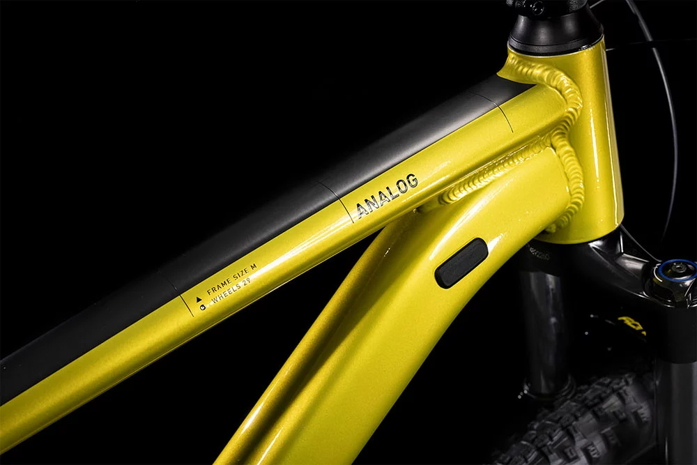 Der brandneue Analog Rahmen besticht 2022 mit einem überarbeiteten, supercleanen Look. Verantwortlich dafür: das im Smooth Welding Verfahren hergestellte Steuerrohr und Sattelstützenprofil. Außerdem haben wir ihm ein geschraubtes Tretlager gegeben und die Züge ins Innere verlegt, damit sie ihre Aufgabe lange machen und leicht gewartet werden können. Es gibt sogar eine Aufnahme für eine Flat-Mount-Scheibenbremse, die nahtlos in die Seitenständeraufnahme integriert ist. Montagepunkte für ACID Schutzbleche und Gepäckträger sind auch mit dabei. Die überarbeitete Geometrie hat ein niedrigeres Oberrohr und konifiziertes Steuerrohr für noch zuverlässigeres Handling. Die Kabelzüge verlaufen im Inneren, was die Wartung erleichtert. Außerdem bleibt viel Platz für breite, griffige und komfortabel rollende 2.25 Zoll Reifen. Wir haben unserem SizeSplit System übrigens weitere Größenoptionen hinzugefügt – dadurch findet jeder und jede die perfekt passende Analog Rahmengröße für sich. Und da mit wachsendem Fahrkönnen auch die Ansprüche steigen, kann der Rahmen mit einer versenkbaren Sattelstütze ausgestattet werden.