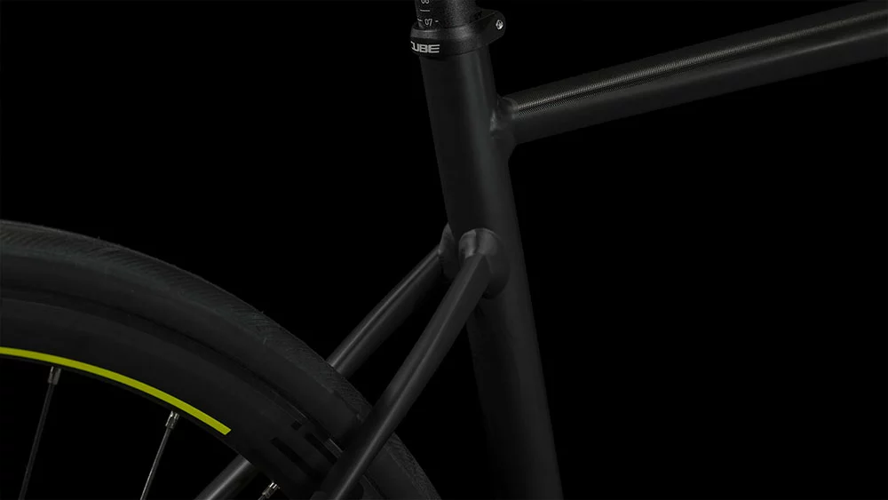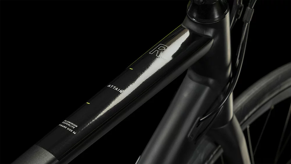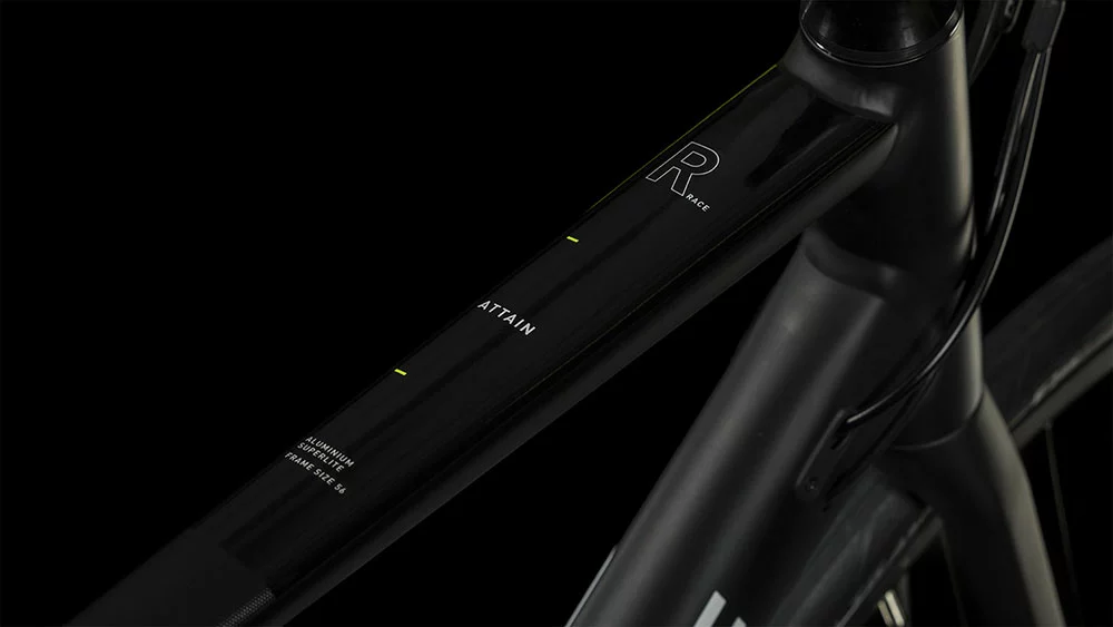 Jeder sollte seinen Lieblingssport maximal genießen können, deshalb hat CUBE bei der Konzeption des Attain Rahmens aus 6061er Aluminium (inklusive Aufnahmen für Scheibenbremsen) viel Wert auf Komfort und Performance gelegt. Durch die doppelt konifizierten Rohre wurde, wo möglich, Gewicht eingespart, selbstverständlich ohne Einbußen in Sachen Stabilität und Steifigkeit. Das konische Steuerrohr und Steckachsen vorne und hinten sorgen für ein superpräzises Lenkverhalten und maximale Kraftübertragung. Außerdem reduzieren die schlanken Sitzstreben und die Vollcarbongabel etwaige Vibrationen vom Straßenbelag und erhöhen so den Fahrkomfort spürbar. Mit dem Smooth Welding Verfahren konnte CUBE die Rohrverbindungen zudem glatt und clean gestalten, was dem Chassis seinen edlen Look verleiht.