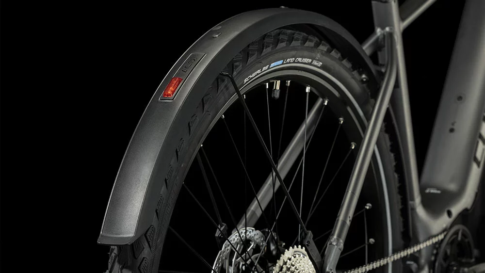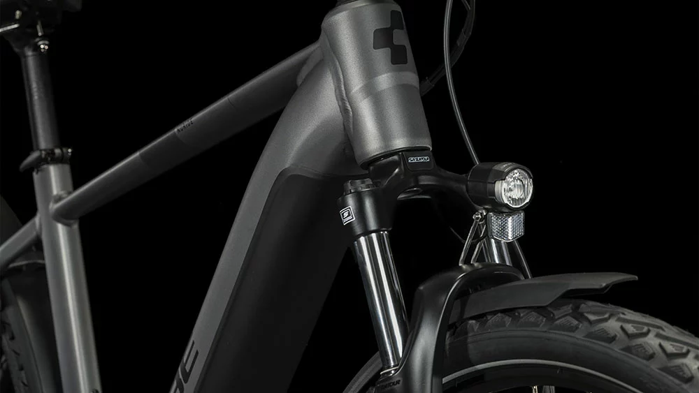 Was bei Nuride Hybrid Performance als Erstes ins Auge sticht, ist seine Optik. Denn CUBE hat den leistungsstarken Bosch Performance Motor mit Bosch Smart System und den PowerTube Akku so formschön ins Rahmendesign integriert, dass sie kaum auffallen. Was aber auffällt, ist die Unterstützung an den Pedalen. Die überarbeitete Efficient Comfort Geometry sorgt gemeinsam mit der Federgabel mit 63 mm Federweg für ein komfortables und zugleich kontrolliertes Fahrgefühl, selbst auf holprigen Strecken. Und in der Sattelklemme hat CUBE ein praktisches Mini-Tool versteckt.