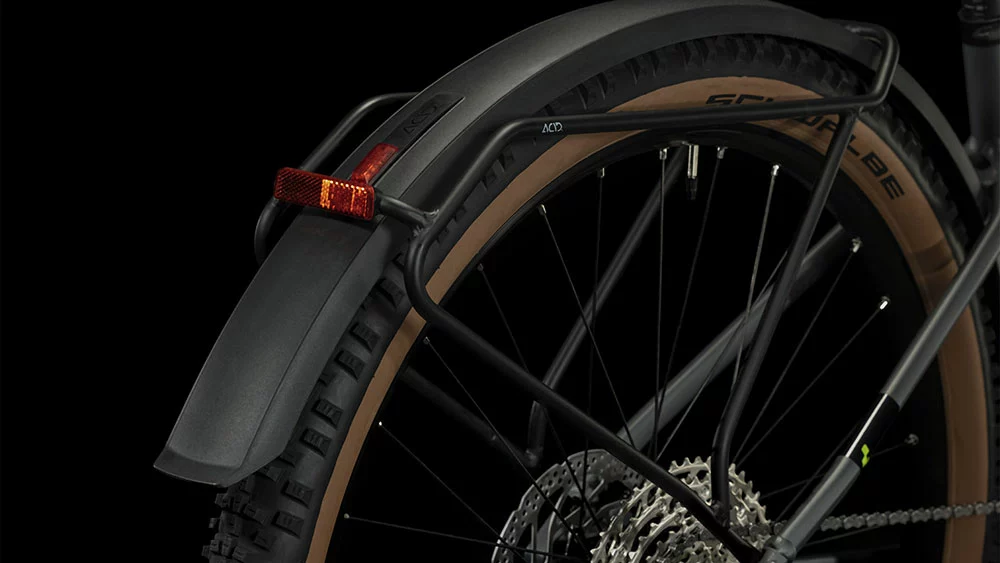 Dabei wechselt die breit gefächerte Deore 11-fach Schaltung von Shimano präzise von Gang zu Gang und macht selbst steile Anstiege zum Spaziergang. Volle Kontrolle in jeder Situation ist das Spezialgebiet der leistungsstarken hydraulischen Scheibenbremsen in Kombination mit 2.6 Zoll breiten Schwalbe Reifen. Außerdem hat CUBE dem Bike für top Fahrkomfort eine einfach einstellbare Luftfedergabel spendiert. Und einen Gepäckträger, Schutzbleche, einen Seitenständer und Lichter für top Support und Sicherheit auf dem Weg durch City oder für den Wochenendausflug.