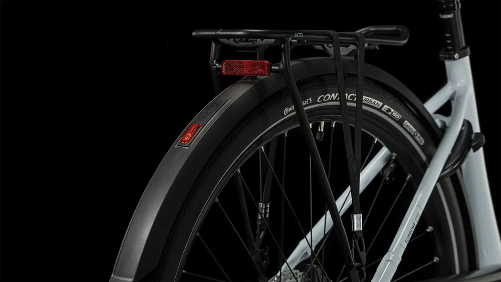 Kleine Details, große Wirkung – das zeigt das Supreme Hybrid EXC. Hier hat Cube eine leistungsstarke hydraulische Scheibenbremse von Shimano und griffige, komfortabel rollende Contact Urban-Reifen von Continental kombiniert.
