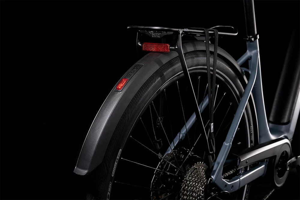 Ruppige Straßenbeläge sind dank der Federgabel kein Problem. Und durch den verstellbaren Vorbau kann die Passform individuell abgestimmt werden. Kontrolle, Bremskraft und Grip bei jedem Wetter gehen auf das Konto der kräftig zupackenden hydraulischen Scheibenbremsen von Shimano im Team mit griffigen Continental Reifen. Und weil man im Großstadtdschungel zu jeder Zeit auf alles vorbereitet sein muss, haben wir dem Bike einen semi-integrierten Gepäckträger für sämtliches Hab und Gut verpasst, außerdem lange Schutzbleche, eine Lichtanlage und einen Seitenständer.