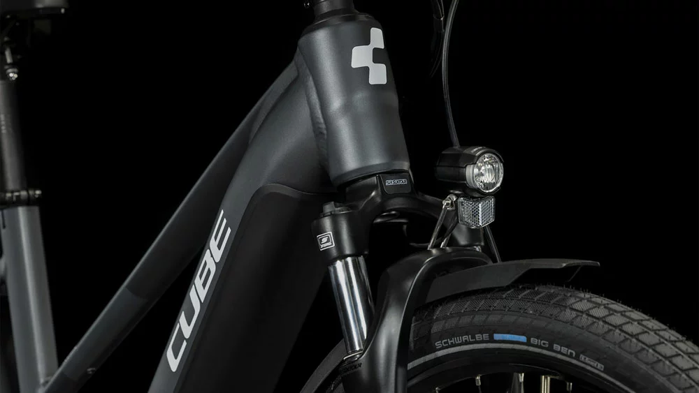 Bei der Entwicklung des Touring Hybrid standen Vielseitigkeit, einfaches Handling und hoher Fahrkomfort im Fokus. Somit habt Cube den leistungsstarken Bosch Performance Motor mit Bosch Smart System und den PowerTube Akku so formschön ins Rahmendesign integriert, dass es kaum auffällt. Was aber auffällt, ist der tolle Support im Vorwärts. Die überarbeitete Efficient Comfort Geometry sorgt gemeinsam mit der Federgabel mit 63 mm Federweg für ein komfortables und zugleich kontrolliertes Fahrgefühl, selbst auf holprigen Strecken. Auf dem Gepäckträger findet sämtliches Hab und Gut bequem Platz. Und in der Sattelklemme hat Cube ein praktisches Mini-Tool versteckt. Was noch? Ein neuer ACID Kettenschutz, ein Seitenständer und extralange Schutzbleche. Gut zu wissen: Den Rahmen gibt es als klassischen Herrenrahmen, Trapezrahmen oder Tiefeinsteiger – da ist für jeden die passende Version und Größe mit dabei!