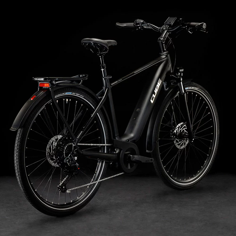 Bei der Entwicklung des Touring Hybrid standen Vielseitigkeit, einfaches Handling und hoher Fahrkomfort im Fokus. Also hat Cube den leistungsstarken Bosch Performance Motor mit Smart System und den PowerTube Akku so formschön ins Rahmendesign integriert, dass sie kaum auffallen. Was aber auffällt, ist der tolle Support im Vorwärts. Die überarbeitete Efficient Comfort Geometry sorgt gemeinsam mit der Federgabel mit 63 mm Federweg für ein komfortables und zugleich kontrolliertes Fahrgefühl, selbst auf holprigen Strecken. Auf dem elegant designten integrierten Gepäckträger IC 3.0 reist sämtliches Hab und Gut bequem und sicher von A nach B. Und in der Sattelklemme hat Cube ein praktisches Mini-Tool versteckt. Was noch? Ein neuer ACID Kettenschutz, ein Seitenständer und extralange Schutzbleche. Gut zu wissen: Den Rahmen gibt es als klassischen Herrenrahmen, Trapezrahmen oder Tiefeinsteiger – da ist für jeden die passende Version und Größe mit dabei!