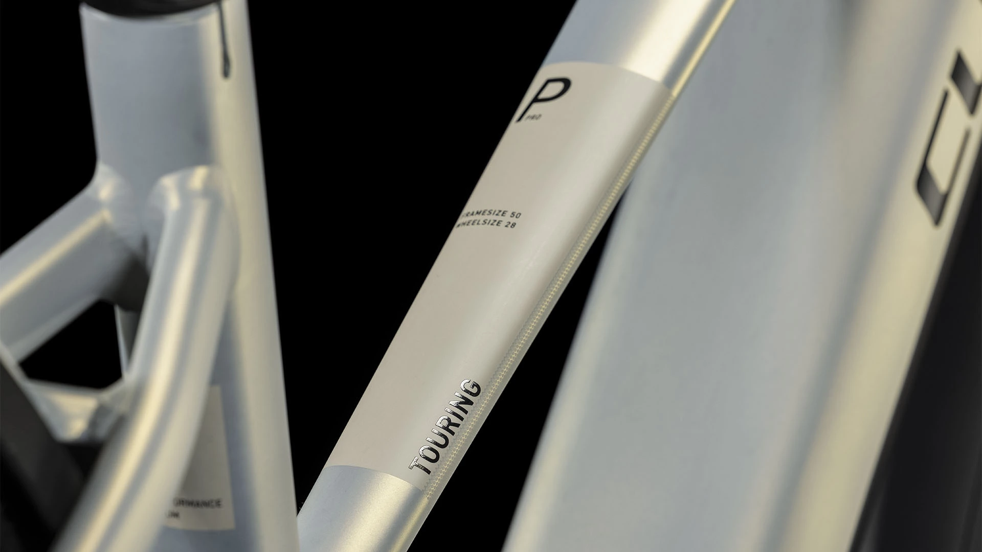 Bei der Entwicklung des Touring Hybrid standen Vielseitigkeit, einfaches Handling und hoher Fahrkomfort im Fokus. Also hat Cube den leistungsstarken Bosch Performance Motor mit Smart System und den PowerTube Akku so formschön ins Rahmendesign integriert, dass sie kaum auffallen. Was aber auffällt, ist der tolle Support im Vorwärts. Die überarbeitete Efficient Comfort Geometry sorgt gemeinsam mit der Federgabel mit 63 mm Federweg für ein komfortables und zugleich kontrolliertes Fahrgefühl, selbst auf holprigen Strecken. Auf dem elegant designten integrierten Gepäckträger IC 3.0 reist sämtliches Hab und Gut bequem und sicher von A nach B. Und in der Sattelklemme hat Cube ein praktisches Mini-Tool versteckt. Was noch? Ein neuer ACID Kettenschutz, ein Seitenständer und extralange Schutzbleche. Gut zu wissen: Den Rahmen gibt es als klassischen Herrenrahmen, Trapezrahmen oder Tiefeinsteiger – da ist für jeden die passende Version und Größe mit dabei!