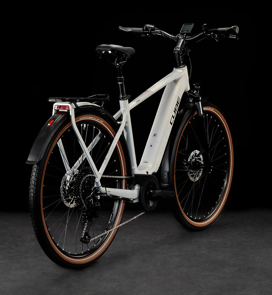 Bei der Entwicklung des Touring Hybrid standen Vielseitigkeit, einfaches Handling und hoher Fahrkomfort im Fokus. Also hat Cube den leistungsstarken Bosch Performance Motor mit Smart System und den PowerTube Akku so formschön ins Rahmendesign integriert, dass sie kaum auffallen. Was aber auffällt, ist der tolle Support im Vorwärts. Die überarbeitete Efficient Comfort Geometry sorgt gemeinsam mit der Federgabel mit 63 mm Federweg für ein komfortables und zugleich kontrolliertes Fahrgefühl, selbst auf holprigen Strecken. Auf dem elegant designten integrierten Gepäckträger IC 3.0 reist sämtliches Hab und Gut bequem und sicher von A nach B. Und in der Sattelklemme hat Cube ein praktisches Mini-Tool versteckt. Was noch? Ein neuer ACID Kettenschutz, ein Seitenständer und extralange Schutzbleche. Gut zu wissen: Den Rahmen gibt es als klassischen Herrenrahmen, Trapezrahmen oder Tiefeinsteiger – da ist für jeden die passende Version und Größe mit dabei!