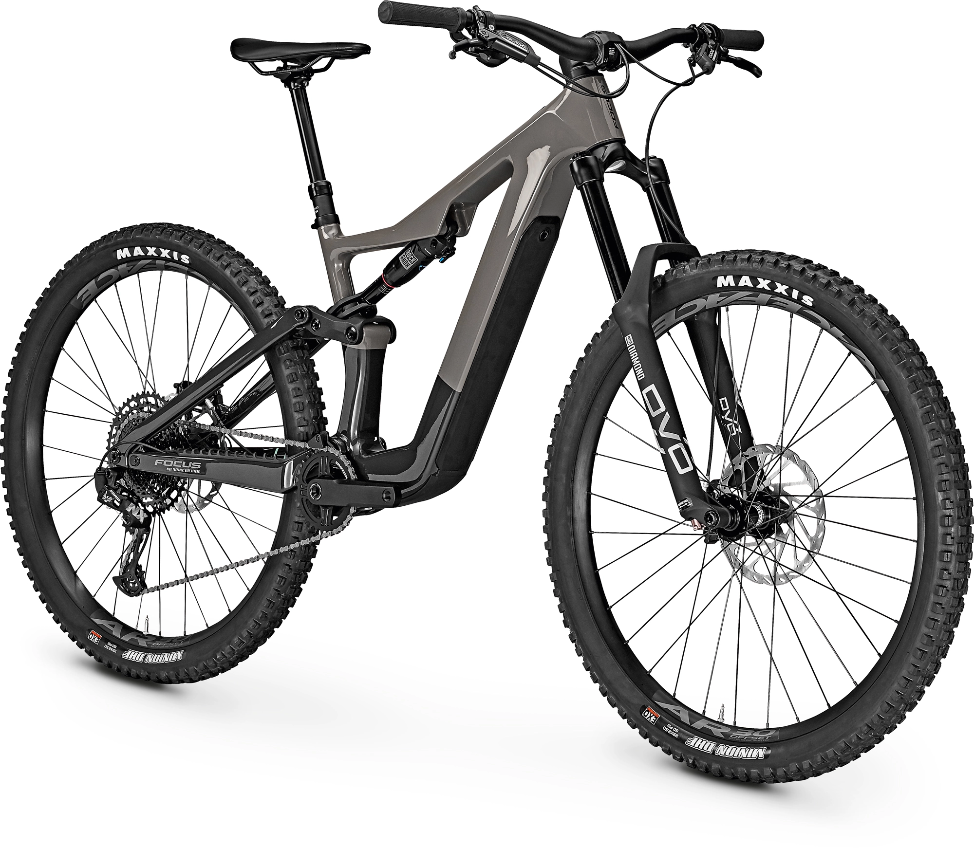 - 160 mm-Federweg DVO Diamond E-Bike Federgabel und 150 mm RockShox Deluxe Dämpfer mit F.O.L.D. Kinematik