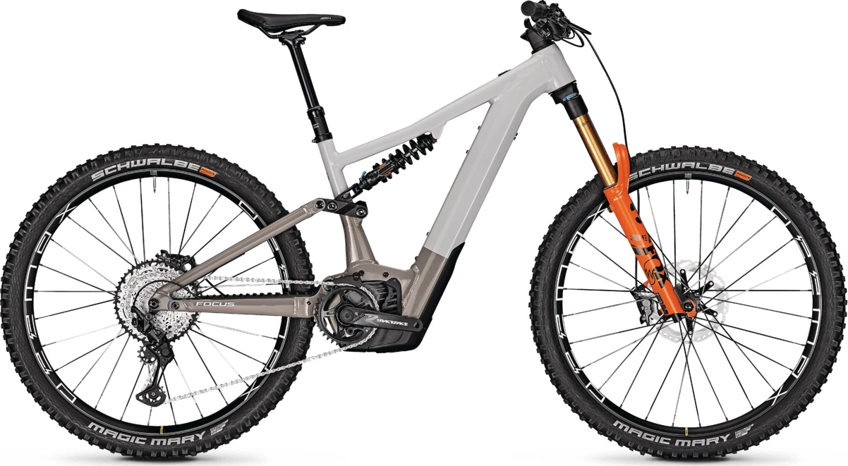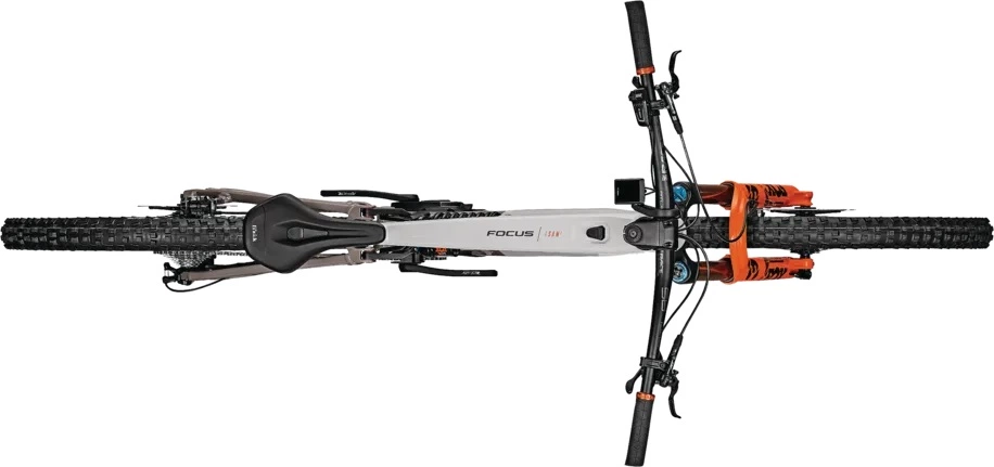 Die abfahrtslastige Ausrichtung wird unterstrichen durch serien-mäßig verbaute Federgabeln mit 38 mm Standrohren. Außerdem ist das E-Enduro mit einem Stahlfeder-Dämpfer kompatibel. Die voll integrierte C.I.S. Kabelführung sorgt für ein aufgeräumtes Cockpit.