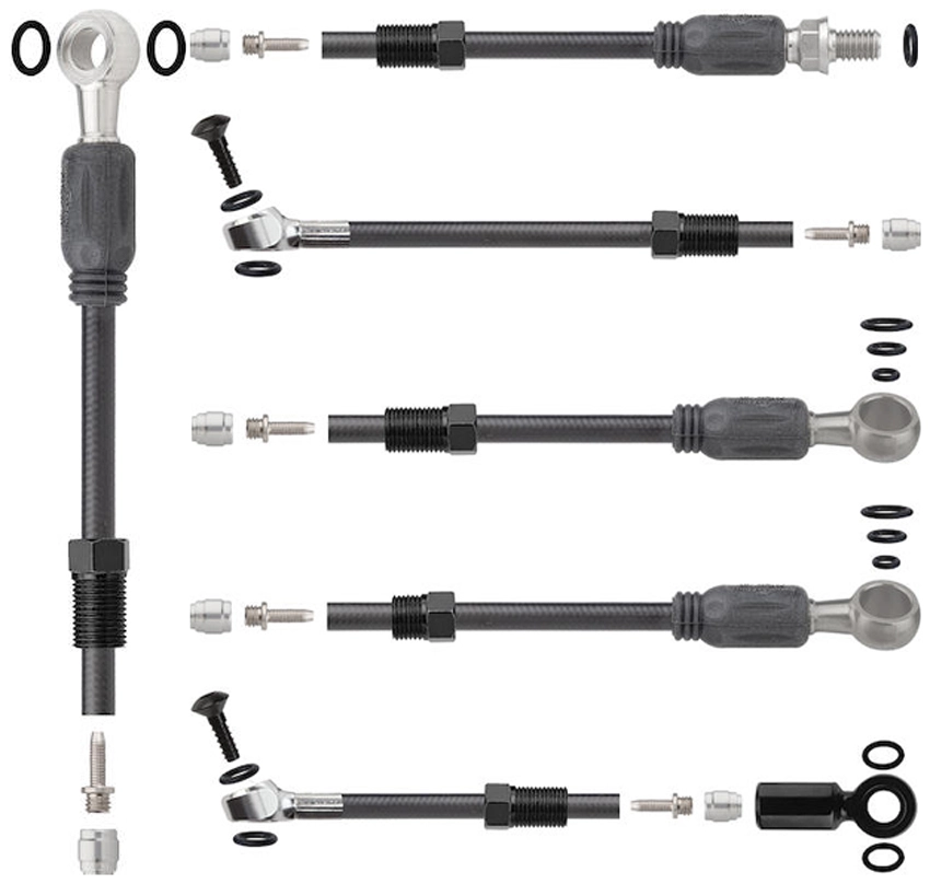 - Die Sport Hydraulikleitungssets enthalten eine 2000mm Hydraulikleitung (HPP) inkl. aller benötigten Adapter Bremssattel- und Hebelseitig für die angegebene Bremse