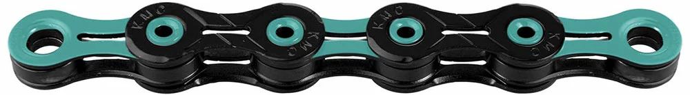 Die super leichte X11 DLC 11-fach Kette von KMC ohne Laufrichtungsabhängigkeit und einer Diamond Like Coating Oberflächenbeschichtung für 11-fach Schaltsysteme.