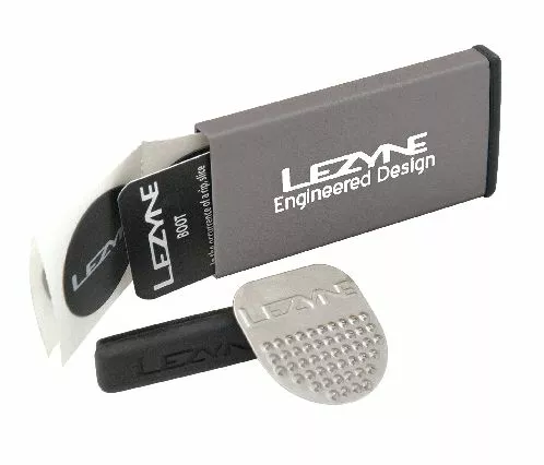 Das Reifenreparaturset von Lezyne wird in einem nachfüllbaren und wasserfestern Aluminiumbehälter aufbewahrt.