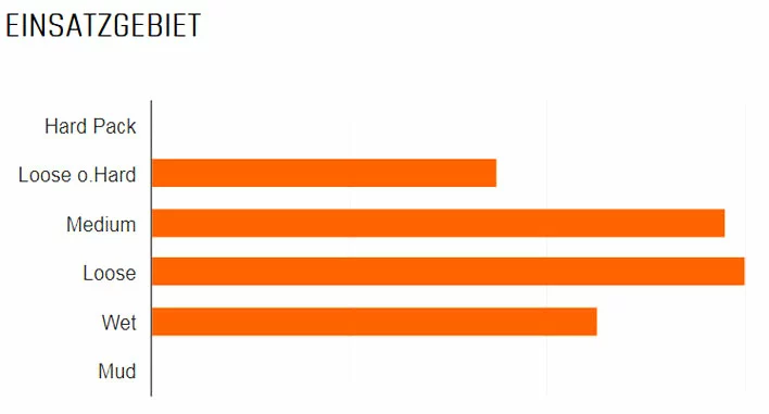 Das offene Profildesign krallt sich tiefer in den Boden, und trotzdem ist der Rollwiderstand niedriger. Die Selbstreinigung ist noch besser. Die exakte Abstimmung der Stollenpositionen ergibt ein sehr gut vorhersehbares Fahrverhalten mit nahtlosen Übergängen beim Einlenken in Kurven und dabei enormen Grip. Auch die Bremstraktion profitiert vom neuen Design.