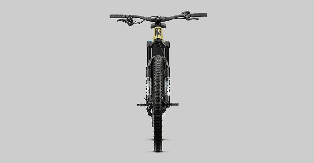 Der flügelähnliche Überwurf, welcher Ober und Unterrohr verbindet, macht nicht nur optisch was her, sondern bietet auch in technischer Hinsicht ein absolutes Highlight. Sowohl der Carbon-Hauptrahmen als auch die Trunnion-Dämpferaufnahme bewirken eine Menge Steifigkeit und Stabilität. Wie auch beim RENDER bietet die untere Dämpferaufnahme gleichzeitig einen Teil der Wippe, welche dem Rahmen eine einzigartige Kinematik und besonders hohe Stabilität des Hinterbaus verleiht. Der 750Wh große Akku wird durch eine Patrone in das Unterrohr integriert, die für geräuscharmes Fahren und einen wackelfreien Sitz sorgt. Durch eine gummierte Abdeckung, welche das Unterrohr abschließt, lässt sich der Akku problemlos und schnell entnehmen. Mittels der am Sitzrohr befindlichen Ladebuchse lässt sich der Akku ohne Entnahme laden. Das Schaltwerk wird am neuen, herstellerübergreifend genormten UDH hanger montiert, der Speedsensor ist elegant in der Bremsscheibe und Kettenstrebe integriert, sodass der klassische Speichenmagnet der Vergangenheit angehört.