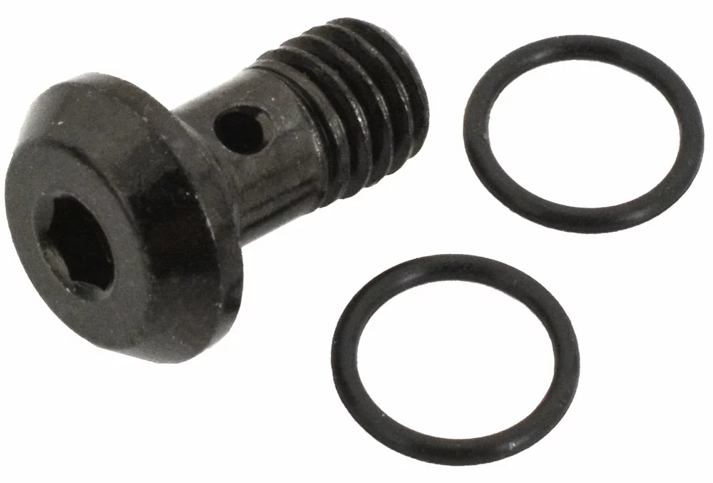 Shimano Bremsleitungsschraube mit zwei Dichtringen für die hydraulische Bremsleitung (Banjo-Schraube) in Kombination mit XT BR-M8100 und SLX BR-M7100 Bremssätteln.