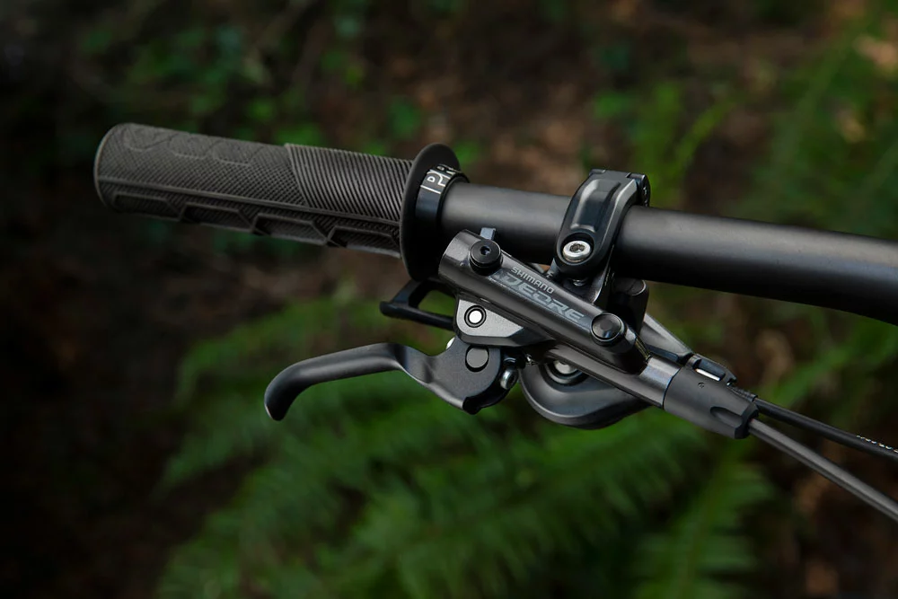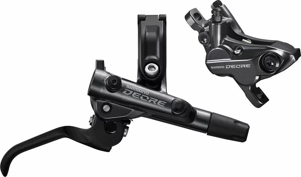 Die hydraulische DEORE BR-M6120 4-Kolben-Scheibenbremse mit 2-Finger-Bremshebel von Shimano fügt sich nahtlos in das starke Line-up der neuen DEORE M6100 Gruppe ein. Die Highlights: mehr Bremskraft mit geringerem Kraftaufwand und eine extrem lineare Reaktion auf die Hebelbewegung.