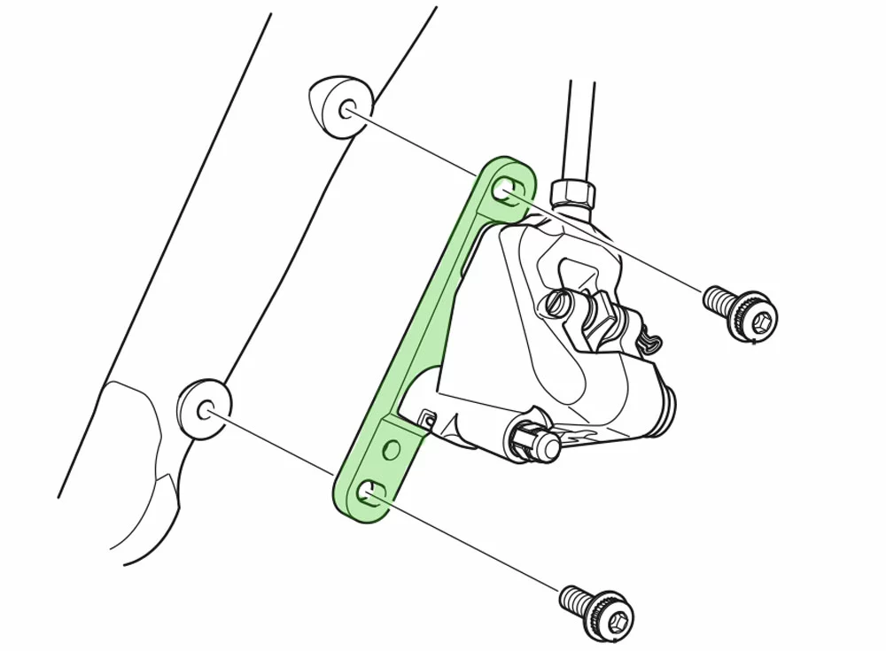 Der Shimano Adapter ermöglicht die Montage von Shimano Flat-Mount Bremssattel an Gabeln mit Flat-Mount Direktaufnahme in Verbindung mit 140 mm und 160 mm Bremsscheiben.