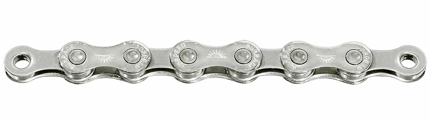 Die haltbare SunRace CN10A 10-fach Kette mit 116 Gliedern für Sram/Shimano 10-fach Schaltsysteme. Inkl. Easy Link Kettenschloss.