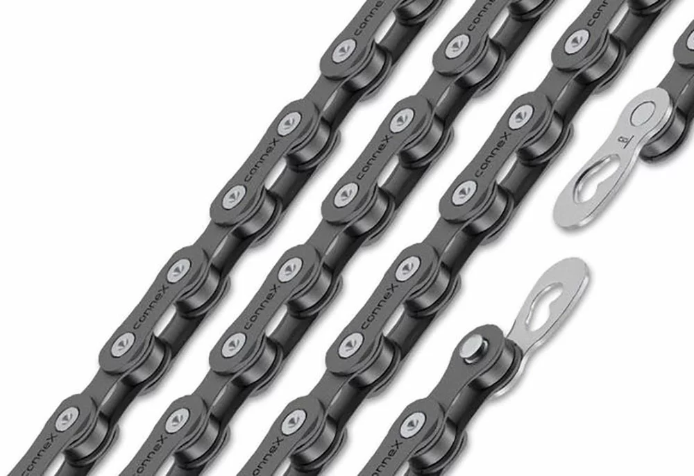 Die Wippermann Connex 800 Kette hat alles, was Einsteiger für eine 8-, 7- oder 6-fach Kettenschaltung brauchen. Die bewährte Kontur der Außenlasche garantiert leises und präzises Schalten, während die Radialnietung maximale Widerstandsfähigkeit und Sicherheit bietet.